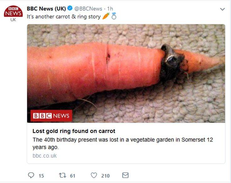 Και να τελικά που το δαχτυλίδι βρέθηκε στο πιο απίθανο σημείο. Στην άκρη ενός καρότου που μάζεψε ο Ντέιβ από τον κήπο χωρίς μάλιστα να το έχει καταλάβει.