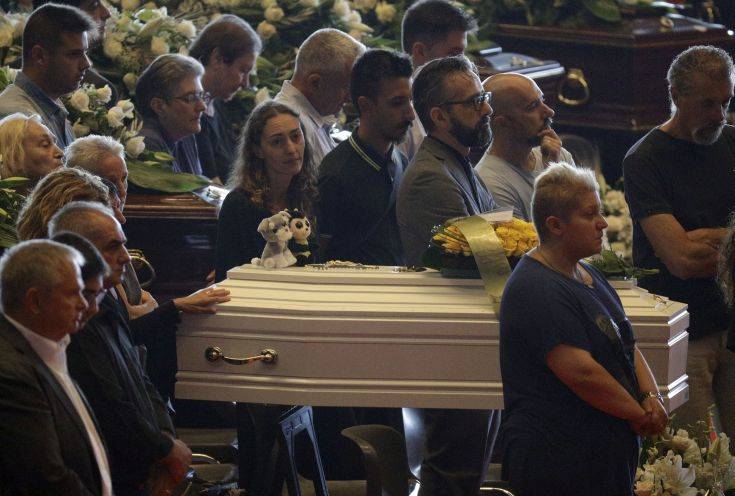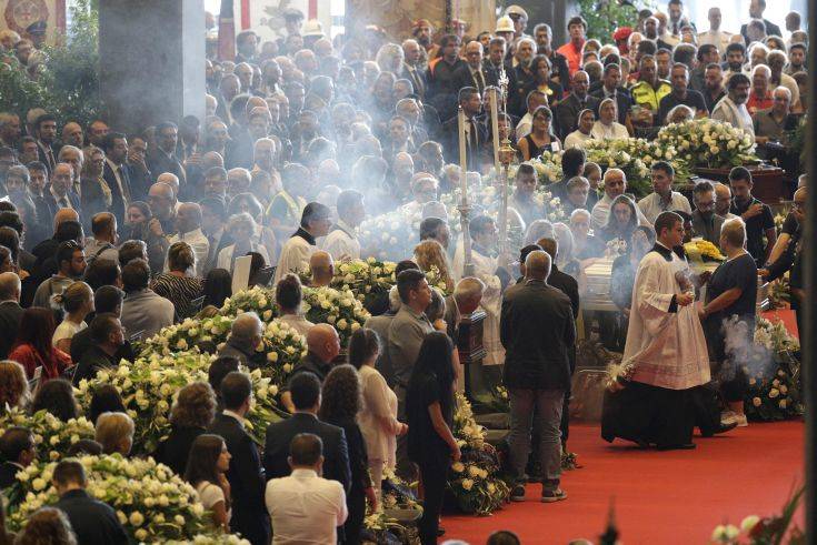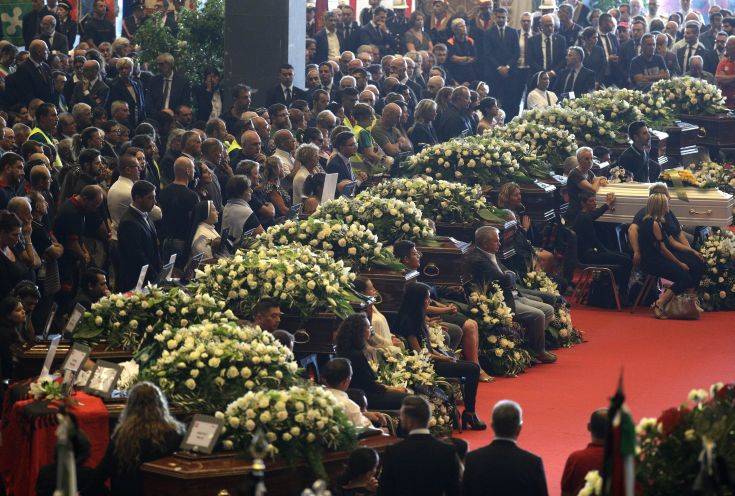 Σε εξέλιξη βρίσκεται η κηδεία ορισμένων από τα θύματα της κατάρρευσης της γέφυρας Μοράντι, στη Γένοβα.