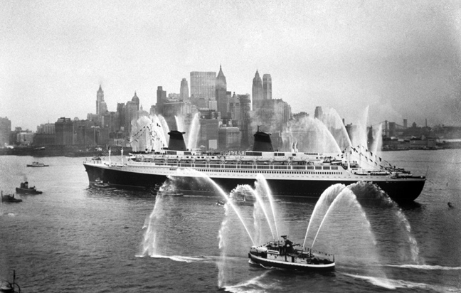 Σκάφη υποδέχονται το «SS France» στο παρθενικό του ταξίδι