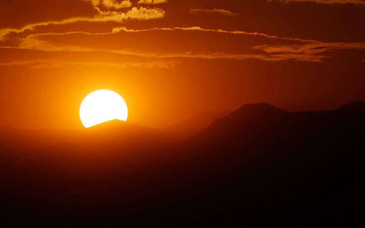 Ο ήλιος καθώς πέφτει πίσω από τα βουνά του Ντένβερ στις Ηνωμένες Πολιτείας και χαρίζει μία πανέμορφη εικόνα.
