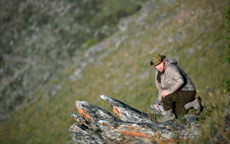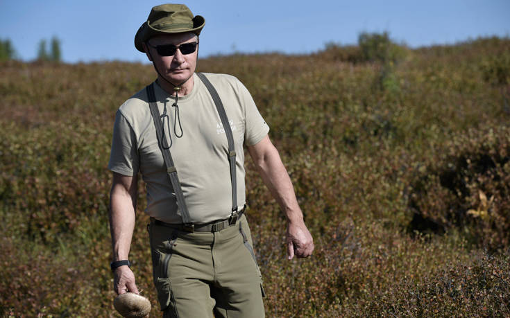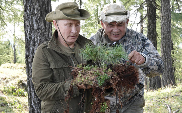 Μερικές φωτογραφίες δείχνουν τον Ρώσο πρόεδρο στο βουνό, σε σκάφος, να κρατάει ένα ραβδί περιπάτου. Σε μια από τις φωτογραφίες φαίνεται ο πρόεδρος Πούτιν με τον υπουργό Άμυνας Σεργκέι Σόϊγκου, να κρατούν ένα φυτό το οποίο δείχνουν ότι μελετούν.