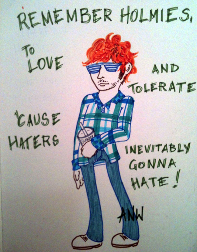 Οι Holmies μοιράζονται τις αγωνίες τους. Ένας από αυτούς εκφράζει το άγχος του γύρω από το περιεχόμενο επιστολής που θέλει να στείλει στον Χολμς. «Μόλις τέλειωσα το γράμμα μου. Σκέφτηκα πολλές ερωτήσεις που ήθελα να του κάνω. Τον ρώτησα λοιπόν αν θα μετενσαρκωνόταν και επέστρεφε ως ποτό, τι ποτό θα ήθελε να είναι», γράφει.