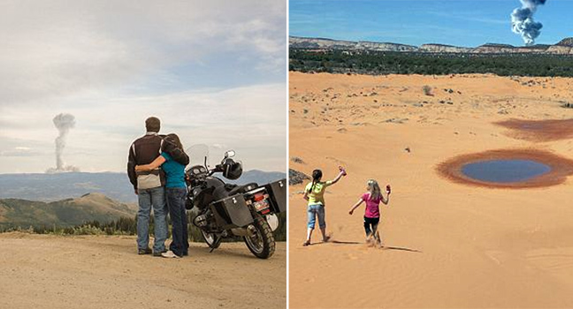 Πώς θα ήταν αν οι πυρηνικές εκρήξεις αποτελούσαν κομμάτι της καθημερινότητάς μας; Ο καλλιτέχνης Clay Lipsky από το Λος Άντζελες συνέθεσε μία σειρά εικόνων με τέτοια περιστατικά που όμως συμβαίνουν- υποτίθεται- μπροστά στα μάτια τουριστών.