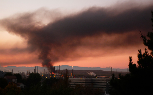 Πυκνός καπνός καλύπτει τον ουρανό πάνω από το διυλιστήριο της Chevron στο Ρίτσμοντ της Καλιφόρνια, στις ΗΠΑ, όπου ξέσπασε χθες το απόγευμα φωτιά.