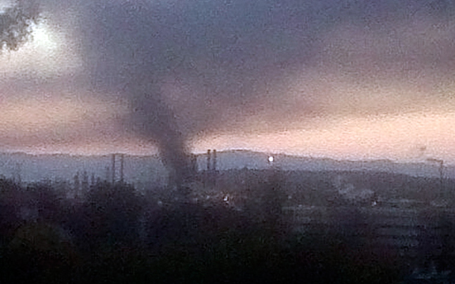 Με τις φλόγες να καλύπτουν το κέντρο των εγκαταστάσεων και τον καπνό να βάφει γκρι τον ουρανό, οι αρχές απηύθυναν έκκληση στους κατοίκους της περιοχής να μείνουν στα σπίτια τους για να αποφύγουν την αποπνικτική ατμόσφαιρα.