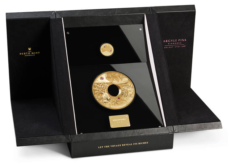 Ένα χρυσό νόμισμα το οποίο είναι διακοσμημένο με σπάνια ροζ διαμάντια και έχει αξία αξίας 2,48 εκατομμυρίων δολαρίων Αυστραλίας (1,5 εκατομμυρίου ευρώ), έκοψε το νομισματοκοπείο του Περθ, προκειμένου να ικανοποιήσει το ολοένα και μεγαλύτερο ενδιαφέρον όσων δεν φείδονται χρημάτων για να αποκτήσουν πολυτελή συλλεκτικά αντικείμενα. Ο θησαυρός βάρους δύο κιλών, που απεικονίζει -μεταξύ άλλων- ένα παλιό ιστιοφόρο που αρμενίζει, έναν χρυσοθήρα, διάφορα καγκουρό και το αυστραλιανό μπαομπάμπ που συναντάται στη Δυτική Αυστραλία, θα πωληθεί σε αυτόν που θα προσφέρει τα περισσότερα χρήματα. Όπως αναφέρει το Αθηναϊκό – Μακεδονικό Πρακτορείο Ειδήσεων, είναι το πιο ακριβό νόμισμα που έχει κόψει ποτέ η Αυστραλία και αναμένεται να καταλήξει στα χέρια αγοραστή από την Ασία ή τη Μέση Ανατολή. Το νόμισμα κόπηκε «για να ανταποκριθεί στην αυξημένη ζήτηση για σπάνια αντικείμενα πολυτελείας», δήλωσε ο γενικός διευθυντής του Νομισματοκοπείου του Περθ, Ρίτσαρντ Χέιζ. Το νόμισμα θα εκτίθεται στο πωλητήριο του Νομισματικοπείου έως τις 28 Σεπτεμβρίου εκτός αν κάποιος συλλέκτης θελήσει να το αποκτήσει νωρίτερα.