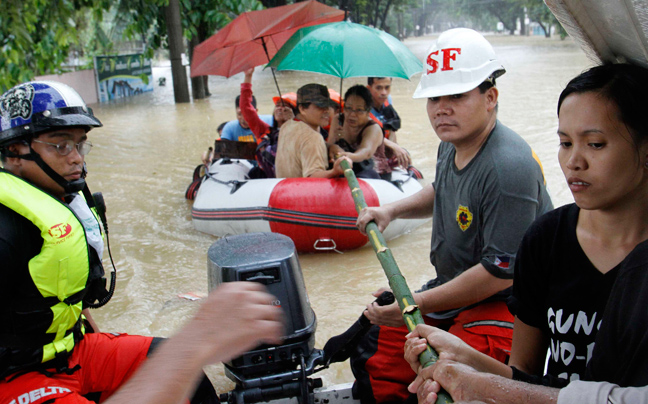 Έκτακτα μέτρα αρωγής των πλημμυροπαθών λαμβάνουν οι αρχές στην πρωτεύουσα των Φιλιππίνων Μανίλα. Μεγάλο μέρος της πόλης βυθίστηκε κάτω από το νερό και παραμένει πλημμυρισμένο λόγω των καταρρακτωδών βροχών που έπεφταν όλη τη νύχτα.