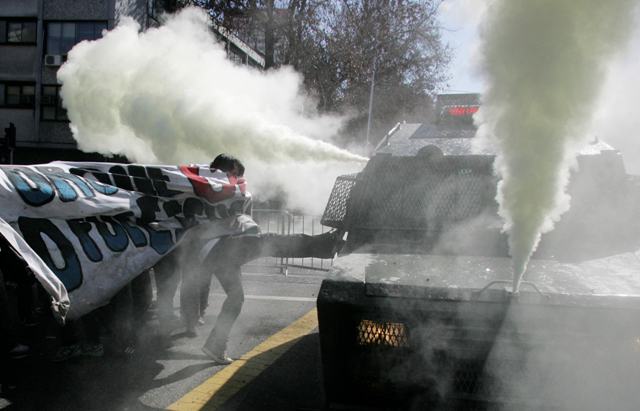 Ισχυρές αστυνομικές δυνάμεις προσπάθησαν να διαλύσουν τους περίπου 1000 φοιτητές που είχαν συγκεντρωθεί στο κέντρο της πρωτεύουσας, χρησιμοποιώντας δακρυγόνα και νερό υπό πίεση.