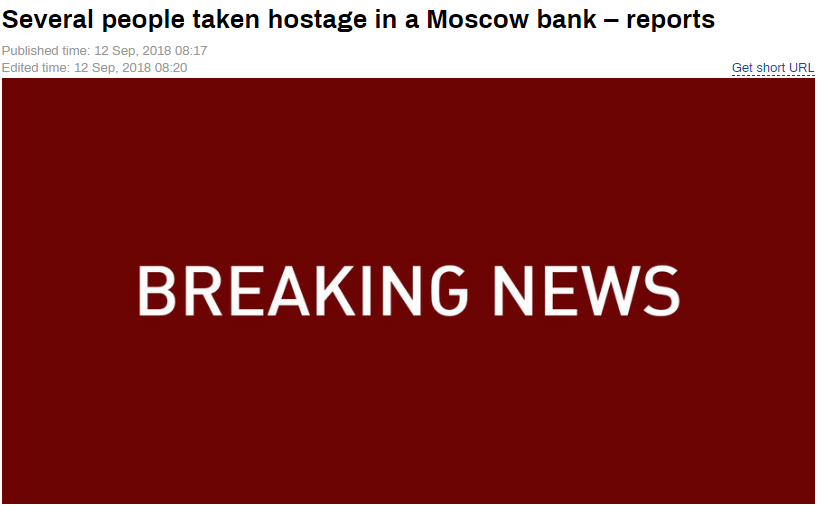 Για ομηρία σε τράπεζα στη Μόσχα κάνουν λόγο ρωσικά media. Όπως μεταδίδει το Russia Today οι όμηροι είναι πολλοί σε μια τράπεζα στο βόρειο τμήμα της Μόσχας. Η αστυνομία έχει ήδη φτάσει στην περιοχή. Τελικά επρόκειτο για άσκηση στην τράπεζα.