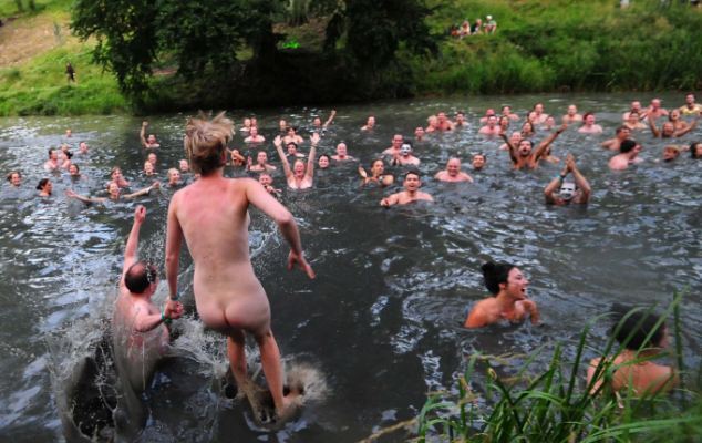 Οι «γενναίοι» γυμνιστές που βλέπετε στις φωτογραφίες δεν γνωρίζονται μεταξύ τους όμως βούτηξαν στα παγωμένα νερά της λίμνης του πάρκου Cornbury, στο Oxfordshire στο πλαίσιο του Wilderness Festival που πραγματοποιήθηκε το Σαββατοκύριακο στη Βρετανία.