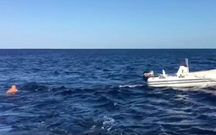 Έπεσε λοιπόν στη θάλασσα και είδε το φουσκωτό του να ξεμακραίνει. Και να κατευθύνεται πάνω στα βράχια!