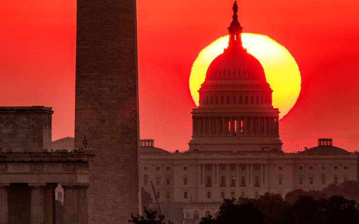 Ο ήλιος ανατέλλει πίσω από το Καπιτώλιο στην Ουάσιγκτον των ΗΠΑ.