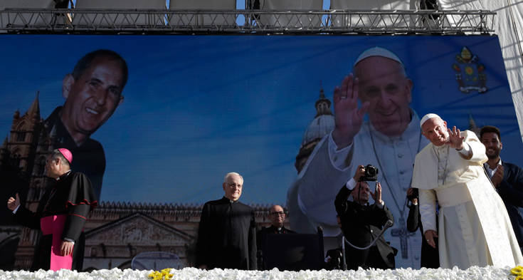 Η Σικελία χρειάζεται, είπε, «άντρες και γυναίκες της αγάπης, όχι άντρες και γυναίκες της τιμής». Αυτά ανέφερε κατά την επίσκεψή του στο Παλέρμο ο Πάπας Φραγκίσκος, εκεί που το 1993 η Μαφία είχε δολοφονήσει τον ιερωμένο Giuseppe Puglisi, καθώς προσπάθησε να προκαλέσει αναταραχή σε μια από τις πιο δύσκολες γειτονιές της πόλης και να απειλήσει την πρωτοκαθεδρία της Μαφίας.