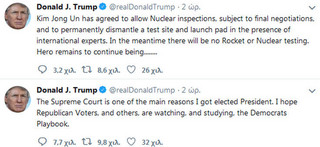 «Πολύ συναρπαστικό» χαρακτήρισε ο Αμερικανός πρόεδρος Ντόναλντ Τραμπ την υποβολή κοινής πρότασης από τη Βόρεια και τη Νότια Κορέα για τη διεξαγωγή των Ολυμπιακών Αγώνων του 2032. Εκφράζοντας την ικανοποίησή του για τις εξελίξεις στη δια-κορεατική σύνοδο κορυφής Μουν Τζε-Ιν και Κιμ Γιονγκ Ουν, ο Τραμπ έγραψε στο Twitter: «Η Βόρεια και η Νότια Κορέα θα υποβάλουν κοινή πρόταση για τη διοργάνωση των Ολυμπιακών Αγώνων του 2032. Πολύ συναρπαστικό!».