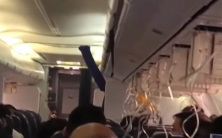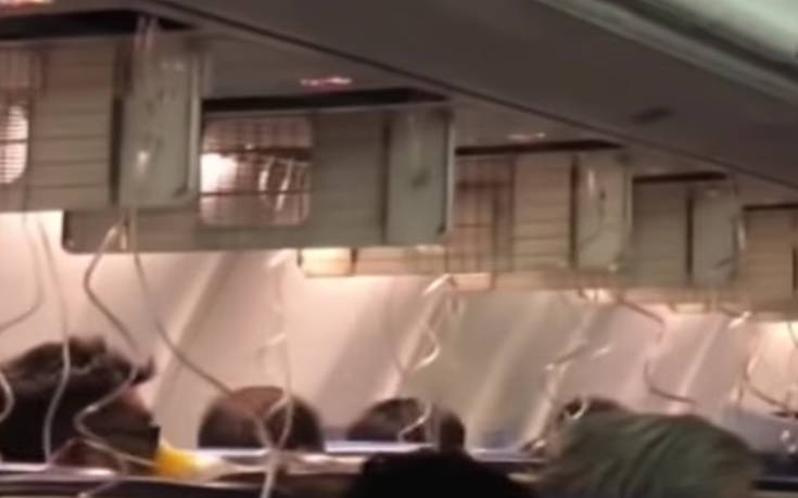 Βίντεο που αναρτήθηκε στα μέσα κοινωνικής δικτύωσης δείχνει τη νεκρική σιωπή που επικρατεί στην καμπίνα, όπου οι επιβάτες φορούν τις μάσκες οξυγόνου που έπεσαν μπροστά τους.