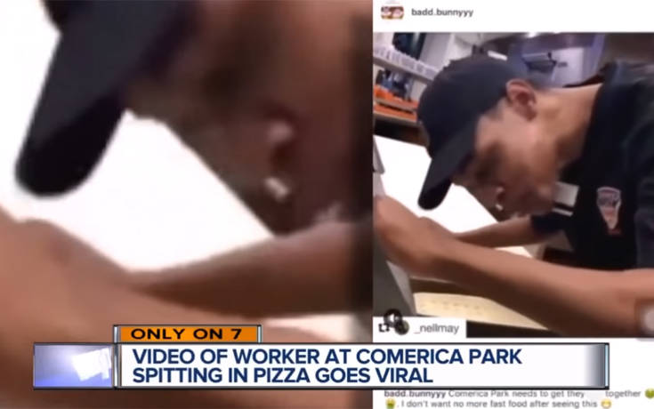Και κάνει το αδιανόητο: φτύνει πάνω στη ζύμη, πριν την καλύψει με τη σάλτσα. Με το που ανέβηκε το βίντεο στο ίντερνετ όμως, ο Kerley όχι μόνο έχασε τη δουλειά του, αλλά συνελήφθη κιόλας.