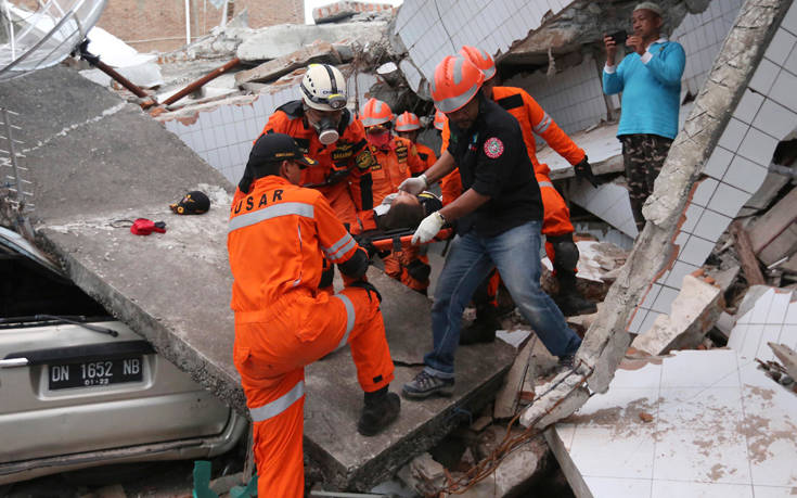 Στην πόλη Palu, οι διασώστες περιμένουν να φτάσουν μεγάλα μηχανήματα για την έρευνα μέσα στα ερείπια ξενοδοχείου και εμπορικού κέντρου, καθώς λόγω των μετασεισμών είναι πολύ επικίνδυνο για τα σωστικά συνεργεία να μπουν στα συντρίμμια. «Η επικοινωνία είναι περιορισμένη, τα μεγάλα μηχανήματα είναι περιορισμένα… Δεν φτάνουν για τα τόσα γκρεμισμένα κτίρια» δήλωσε εκπρόσωπος της Υπηρεσίας Αντιμετώπισης Εθνικών Καταστροφών. Ο πολύ ισχυρός σεισμός των 7,5 Ρίχτερ σημειώθηκε την Παρασκευή και εκδόθηκε προειδοποίηση για τσουνάμι. Είναι ωστόσο ασαφές αν η προειδοποίηση ήταν σε ισχύ όταν «χτύπησαν» τα κύματα. Βίντεο δείχνουν ανθρώπους να ουρλιάζουν ενώ κύματα ύψους έξι μέτρων σαρώνουν την ακτή, παρασύροντας τα πάντα στο πέρασμά τους. Ο Ινδονήσιος πρόεδρος επισκέφθηκε την περιοχή ζητώντας να γίνουν προσπάθειες «νυχθημερόν» για τη διάσωση των επιζώντων. Συμφώνησε επίσης να δεχθεί διεθνή βοήθεια για την αντιμετώπιση της καταστροφής. Είναι όμως πολύ δύσκολο ακόμα και το να φτάσει η βοήθεια σε πολλές περιοχές, λόγω των μπλοκαρισμένων δρόμων, του αεροδρομίου που έχει υποστεί ζημιές και των προβληματικών τηλεπικοινωνιών. Σύμφωνα με έναν από τους εθελοντές διασώστες, τρεις άνθρωποι διασώθηκαν από το ξενοδοχείο που κατέρρευσε, αλλά ακόμα πενήντα μπορεί να είναι παγιδευμένοι στα συντρίμμια του. «Ακούγαμε φωνές από πολλά σημεία, ακούσαμε κι ένα παιδί. Όλοι ζητούσαν βοήθεια αλλά παραμένουν εγκλωβισμένοι. Τους δίνουμε κίνητρο, να αντέξουν, γιατί είναι παγιδευμένοι μεταξύ ζωής και θανάτου. Τους δώσαμε τροφή και νερό αλλά δεν είναι αυτό που ήθελαν. Θέλουν να βγουν έξω. Ουρλιάζουν ζητώντας βοήθεια. Άλλοι απλώς χτυπούν». Στην πόλη Palu, οι επιζώντες κοιμούνται στο ύπαιθρο φοβούμενοι να επιστρέψουν σπίτια τους, ακόμα κι αν δεν έχουν ζημιές. Λόγω των ζημιών στα νοσοκομεία, οι τραυματίες δέχονται ιατρική βοήθεια σε ανοιχτούς χώρους ενώ στήθηκε και τουλάχιστον ένα στρατιωτικό νοσοκομείο.