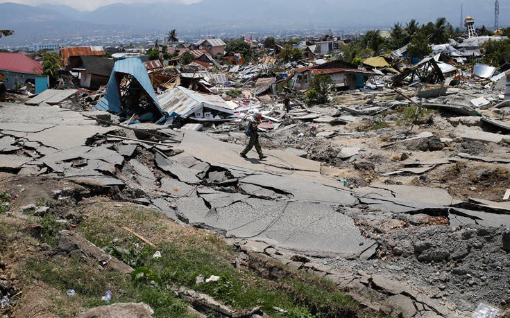 Βιβλική είναι η καταστροφή στην Ινδονησία από τον πολύ ισχυρό σεισμό των 7,5 Ρίχτερ και το καταστροφικό τσουνάμι, με τον επίσημο απολογισμό να αριθμεί πλέον 1.347 νεκρούς, σύμφωνα με επίσημα στοιχεία των αρμόδιων υπηρεσιών. Στην πόλη Palu του νησιού Σουλαουέζι, που επλήγη περισσότερο, καταφτάνει ανθρωπιστική βοήθεια, καθώς οι επιζώντες δεν έχουν πρόσβαση ούτε σε νερό ούτε σε ηλεκτρικό ρεύμα. Η κατάσταση είναι τεταμένη και η αστυνομία έχει αρχίσει τις περιπολίες προκειμένου να σταματήσουν οι λεηλασίες καταστημάτων. Ήδη χθες ρεπόρτερ του BBC στην πόλη μετέδωσε πως έπεσαν προειδοποιητικά πυρά για να διαλύσουν το πλήθος που λεηλατούσε ένα μικρό κατάστημα. Αρχικά, όπως αναφέρει σήμερα το βρετανικό δίκτυο, οι αρχές ήταν μάλλον επιεικείς με τους ανθρώπους πουν άρπαζαν είδη πρώτης ανάγκης, με δεδομένες τις μεγάλες ελλείψεις και την απόγνωση των πολιτών. Ωστόσο στη συνέχεια συνελήφθησαν άνθρωποι που έκλεβαν ηλεκτρονικούς υπολογιστές και μετρητά. Αστυνομία και στρατός συνοδεύουν και το κομβόι της ανθρωπιστικής βοήθειας, που έφτασε στην πόλη. Παράλληλα, μέσα σε όλα, χθες άρχισε να εκρήγνυται και το ηφαίστειο Soputan στο ίδιο νησί, σε απόσταση χιλίων χιλιομέτρων από το Palu.