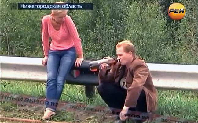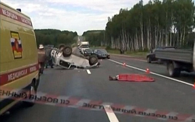 Το βίντεο, που προβλήθηκε στη ρωσική τηλεόραση, δείχνει μία νεαρή γυναίκα η οποία επέβαινε σε ένα όχημα που ενεπλάκη σε τροχαίο σε αυτοκινητόδρομο στην περιοχή Nizhny Novgorod.