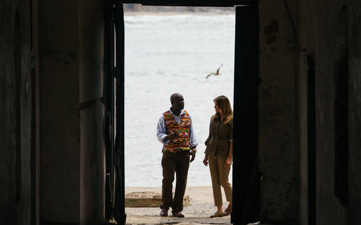 Η πρώτη κυρία των ΗΠΑ, Μελάνια Τραμπ, κατέθεσε στεφάνι σήμερα σε ένα φρούριο σκλάβων, στην Γκάνα, δεσμευόμενη ότι δεν θα ξεχάσει ποτέ το μέρος όπου κρατούνταν οι Αφρικανοί πριν επιβιβαστούν σε πλοία για να σταλούν και να πουληθούν στην άλλη πλευρά του Ατλαντικού.