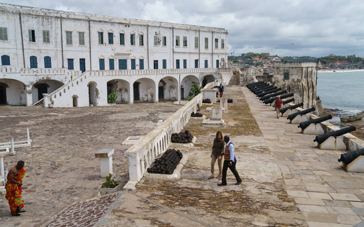 Το φρούριο Κέιπ Κοστ του 17ου αιώνα, που σήμερα είναι μνημείο, ήταν ένα από τα μεγαλύτερα στρατόπεδα συγκέντρωσης σκλάβων. Πολλοί ξένοι ηγέτες το έχουν επισκεφθεί, συμπεριλαμβανομένου και του πρώην προέδρου των ΗΠΑ Μπαράκ Ομπάμα, όπως μεταδίδουν Reuters και AFP και αναμεταδίδει το Αθηναϊκό Πρακτορείο Ειδήσεων.