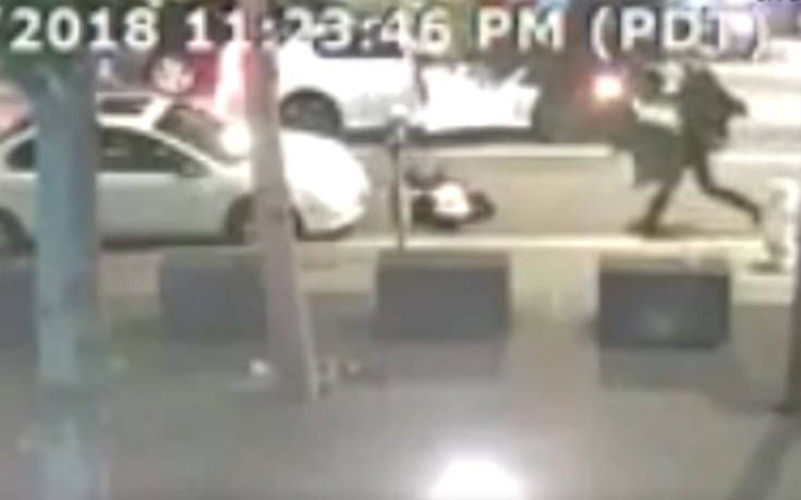 Στο βίντεο που έδωσε στη δημοσιότητα η αστυνομία της πόλης, βλέπουμε τον οδηγό να κατεβαίνει από το αμάξι και να τον χτυπά βιαίως. Και μετά επιστρέφει στη θέση του και φεύγει ανενόχλητος.