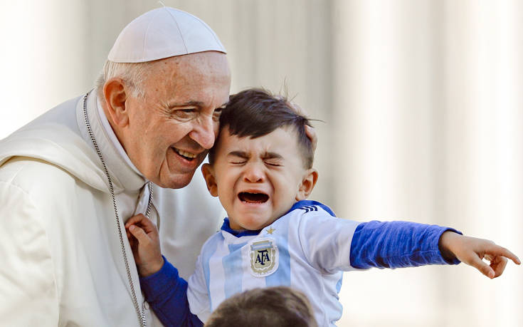 Να σταματήσει με κάθε τρόπο το κλάμα του παιδιού προσπαθεί ο Πάπας Φραγκίσκος την ώρα της καθιερωμένης βόλτας του στην πλατεία του Αγίου Πέτρου.