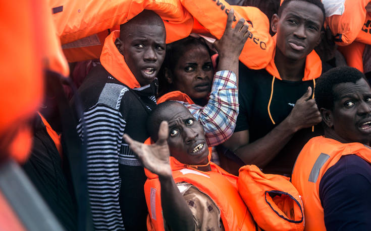 Ισπανική ΜΚΟ μοιράζει γιλέκα σε μετανάστες που εντοπίστηκαν στη θάλασσα του Alboran, περίπου 64 μίλια από τις ισπανικές ακτές.