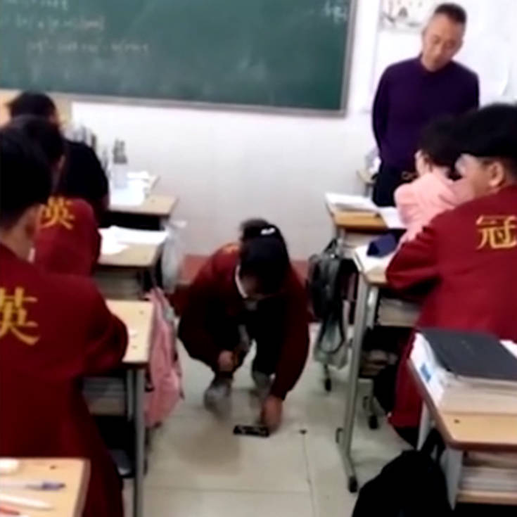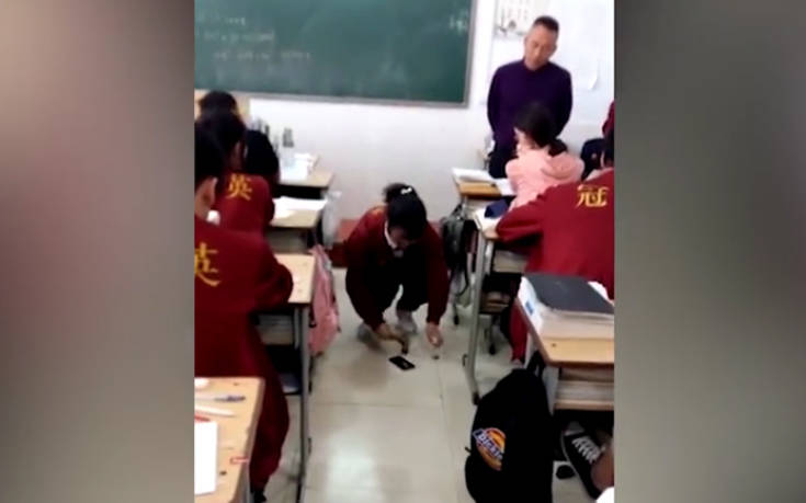 Οι εικόνες από μία νεαρή μαθήτρια σχολείου στην Κίνα να βρίσκεται γονατισμένη μέσα στην τάξη και να σπάει το κινητό της τηλέφωνο με ένα σφυράκι κάνουν το γύρο του διαδικτύου.