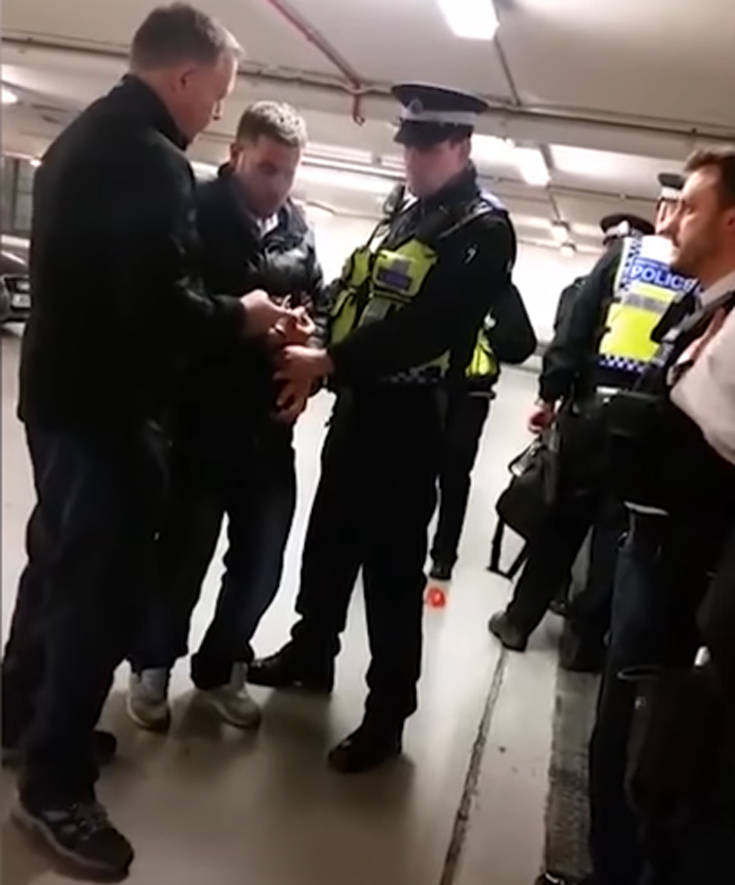 Στο πάρκινγκ άκουσε ωστόσο κάποιον που ζητούσε βοήθεια. Βρήκε τον ιδιοκτήτη του αυτοκινήτου να κρατά τη μια πόρτα και του ζήτησε να κρατήσει κι αυτός την άλλη, ώστε να μπλοκαριστεί εντός ο επίδοξος κλέφτης.