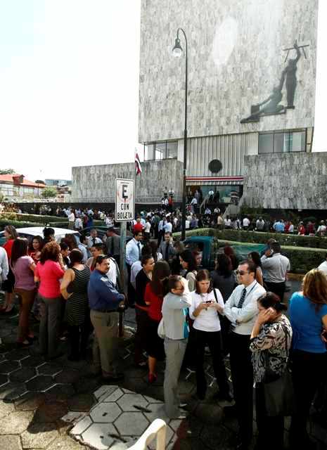 Κόσμος συγκεντρωμένος έξω από το Ανώτατο Δικαστήριο, το οποίο εκκενώθηκε λόγω του σεισμού