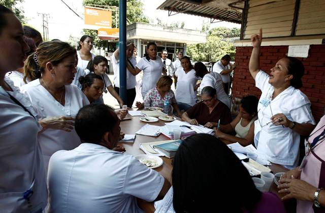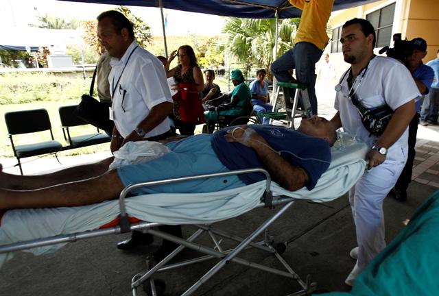 Οι νοσοκόμες λαμβάνουν οδηγίες μετά την εκκένωση του νοσοκομείου Monsenor Sanabria