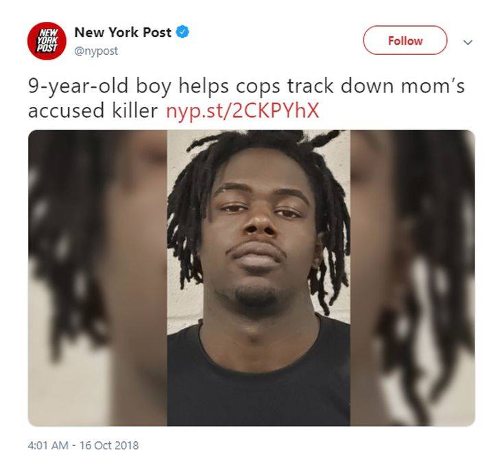 Ένα 9χρονο αγόρι από την πολιτεία Τζόρτζια των ΗΠΑ, που ήταν αυτόπτης μάρτυρας της δολοφονίας της μητέρας του, βοήθησε τους αστυνομικούς να ταυτοποιήσουν τον δράστη και να τον κλείσουν στη φυλακή.