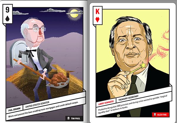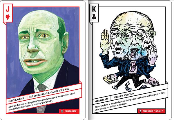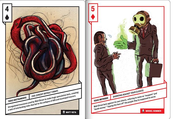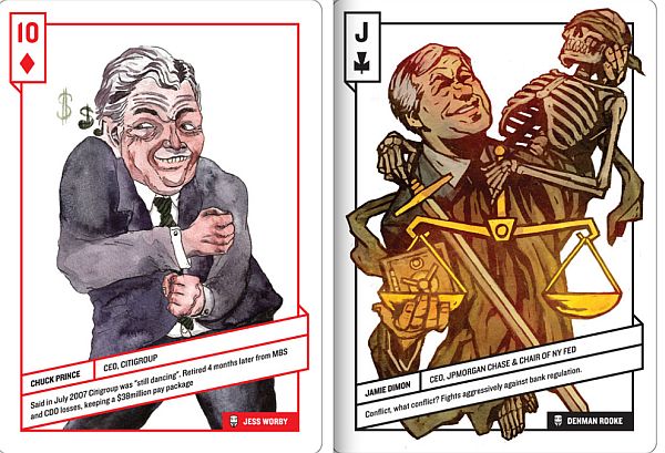 Τα μέλη του κινήματος Occupy έχουν εγκαταλείψει τους δρόμους και τα πάρκα της Νέας Υόρκης, αλλά δεν παύουν να παίρνουν μέρος σε δράσεις κατά του «1%». Η πιο πρόσφατη ιδέα τους ήταν η δημιουργία μίας τράπουλας με τα πρόσωπα και τους παράγοντες που οδήγησαν την αμερικανική οικονομία στο χείλος της καταστροφής.