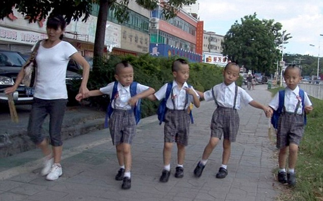 Τα 6χρονα τετράδυμα άρχισαν το σχολείο στην πόλη Shenzhen στην επαρχία Guangdong στη νότια Κίνα.