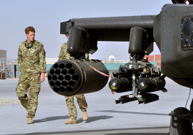 Ο πρίγκιπας ανέβηκε στο κοκ πιτ ενός από τα ελικόπτερα που θα πετάξει και άρχισε να επιθεωρεί τον οπλισμό του.