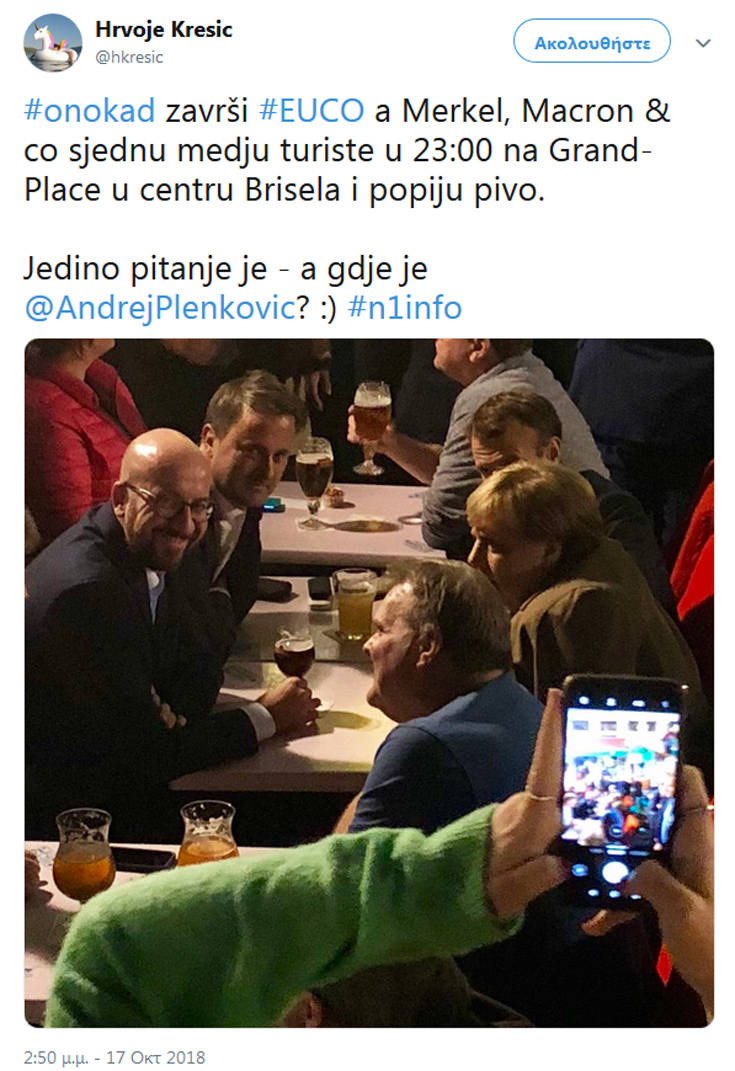 Για μπίρες και τηγανιτές πατάτες βρήκαν η Άγκελα Μέρκελ, ο Εμανουέλ Μακρόν και οι ηγέτες του Βελγίου και του Λουξεμβούργου Σαρλ Μισέλ και Ξαβιέ Μπετέλ αργά χθες το βράδυ, μετά τη Σύνοδο Κορυφής με την Τερέζα Μέι για το Brexit.