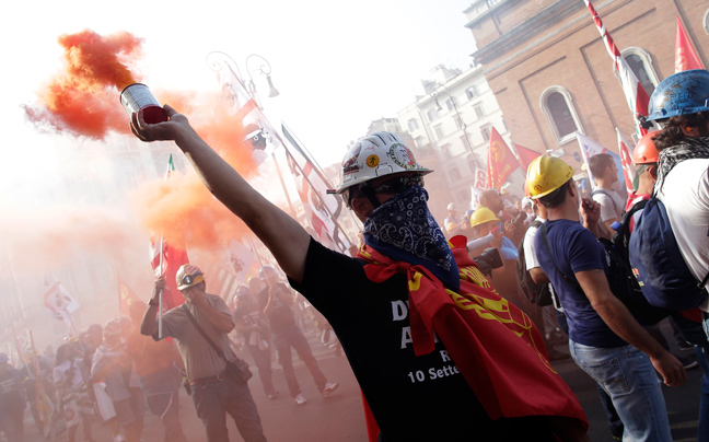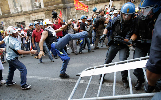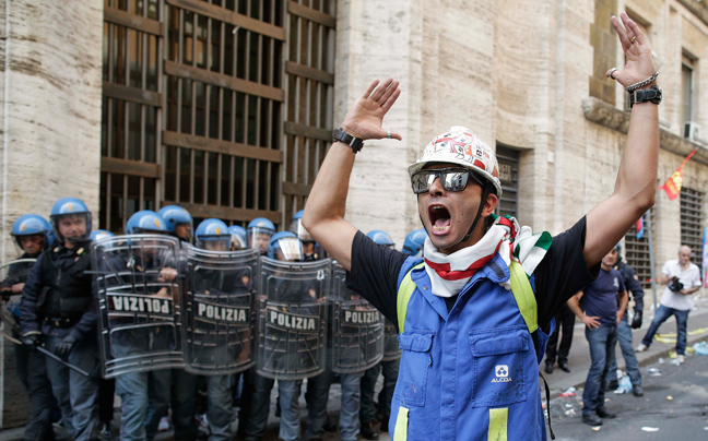 Οι εργάτες, απομάκρυναν, σπρώχνοντάς τον με έντονο τρόπο, τον υπεύθυνο οικονομικής πολιτικής του κεντροαριστερού «Δημοκρατικού Κόμματος», Στέφανο Φασίνα, όταν τους πλησίασε για να τους μιλήσει.