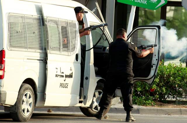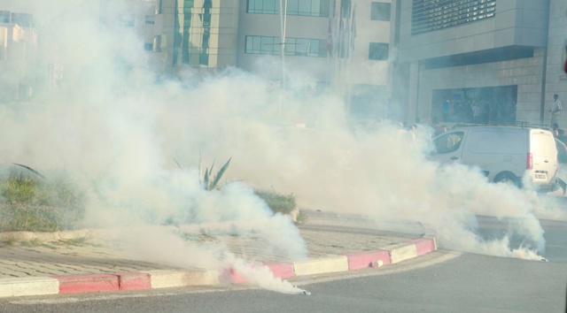 Οι αστυνομικοί που βρίσκονται στην περιοχή προσπαθούν να διαλύσουν το πλήθος πετώντας δακρυγόνα.