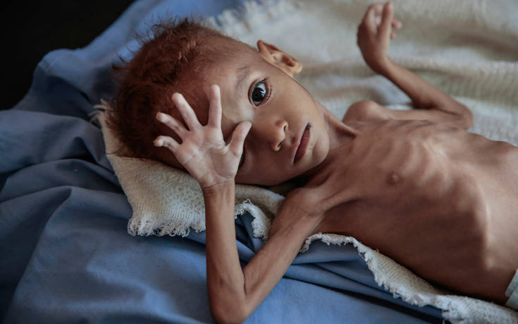 Ένα υποσιτισμένο αγόρι βρίσκεται σε ένα νοσοκομειακό κρεβάτι στο Aslam Health Center, στη Χάτζα της Υεμένης. Οι μάχες στο Hodeida, το λιμάνι της Ερυθράς Θάλασσας, απειλούν να επιδεινώσουν τη μεγαλύτερη ανθρωπιστική κρίση στον κόσμο.