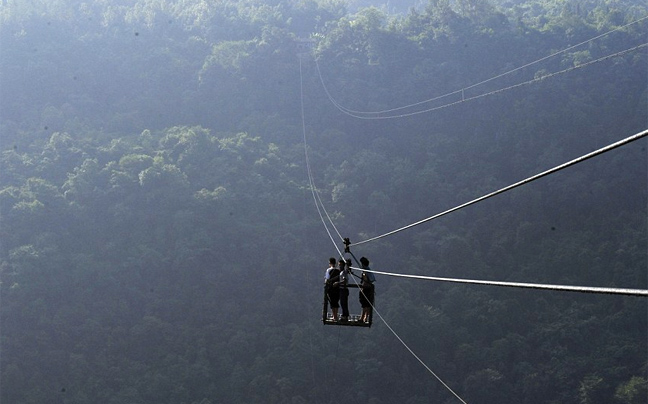 Εάν έχετε την παραμικρή υποψία υψοφοβίας το χωριό Yushan της Κίνας θα πρέπει να διαγραφεί από τη λίστα των πιθανών ταξιδιών σας. Γιατί παρά την πανέμορφη τοποθεσία του, η μόνη σύνδεση που έχει με τον υπόλοιπο κόσμο είναι ένα… συρματόσκοινο με μήκος ενός χιλιομέτρου, που αιωρείται σε ύψος 400 μέτρων από το έδαφος.
