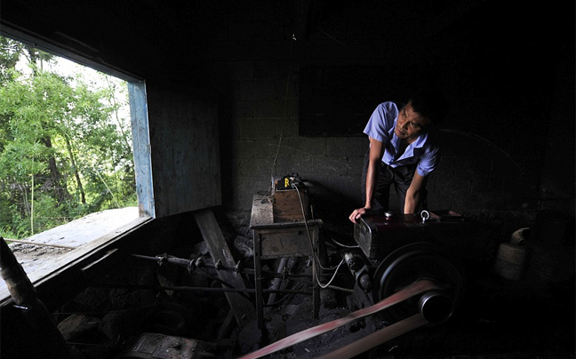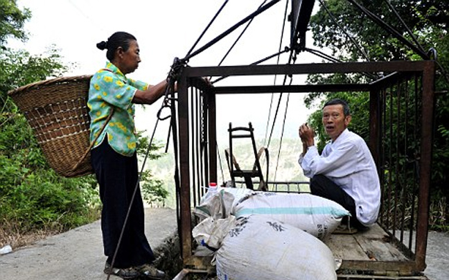 Το συρματόσχοινο δουλεύει με μηχανή diesel και ο χειριστής Zhang Xinjian αφηγείται: «Άρχισα να δουλεύω εδώ όταν φτιάχτηκε το σύστημα, κανείς δεν ήθελε να το αναλάβει. Επειδή ο πατέρας μου ήταν ο επικεφαλής του χωριού, ανέθεσε σε μένα τη δουλειά».