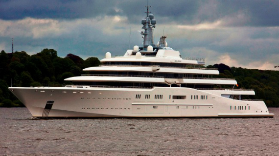 Ναι, πάλι του Roman Abramovich… Έχουμε και λέμε: πισίνα; Εννοείται. Ελικοδρόμια; Δύο. Προσωπικό; Σαράντα νοματαίοι, κάποιοι μάλιστα από τη βρετανική SAS. Μίνι υποβρύχιο; Φυσικά. Σύστημα αναγνώρισης πυραύλων; Γιατί όχι;