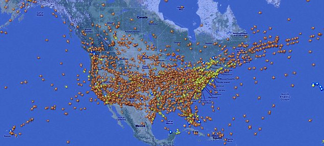 Οποιαδήποτε στιγμή της ημέρας περίπου πέντε χιλιάδες αεροπλάνα «σκίζουν» τον ουρανό των Ηνωμένων Πολιτειών και πλέον υπάρχει και μία ιστοσελίδα που επιτρέπει στους χρήστες να τα εντοπίσουν, σε πραγματικό χρόνο, πάνω στο χάρτη.