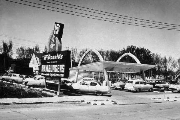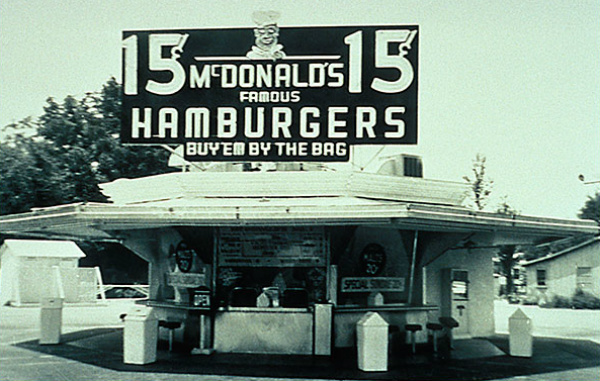 Ήταν λοιπόν το 1939 όταν δύο αδέλφια, ο Richard και ο Maurice McDonald, άνοιξαν το πρώτο εστιατόριό τους στην Pasadena της Καλιφόρνια. Οι δουλειές πήγαιναν καλά, αποφάσισαν ωστόσο να εισάγουν μερικούς νεωτερισμούς στα ταχυφαγεία. Απλοποίησαν το μενού με τέτοιο τρόπο ώστε να μη χρειάζεται μαχαίρι, πιρούνι ή κουτάλι για να γευτεί κάποιος το φαγητό. Αντικατέστησαν όλα τα πιατικά και γυαλικά με μιας χρήσης πλαστικά ποτήρια, πιάτα και σακούλες.