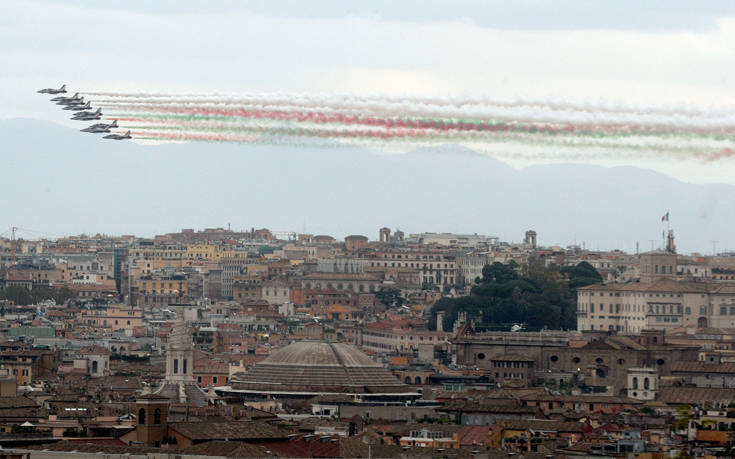 Ρώμη, Ιταλία. Αεροσκάφη δημιουργούν έργα τέχνης στον ουρανό