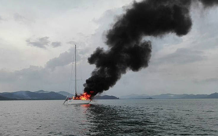 Οι 9 Βρετανοί διασώθηκαν από το φλεγόμενο σκάφος, το οποίο τυλίχθηκε αμέσως στις φλόγες όταν χτυπήθηκε από κεραυνό. Το ιστιοπλοϊκό έπλεε λίγο έξω από το Πουκέτ της Ταϊλάνδης όταν το βρήκε η σφοδρή καταιγίδα.
