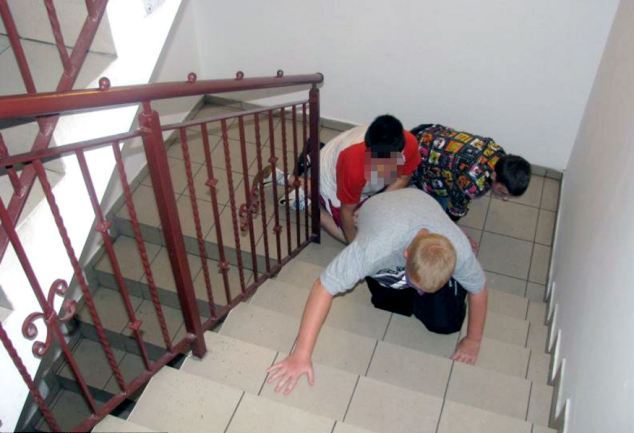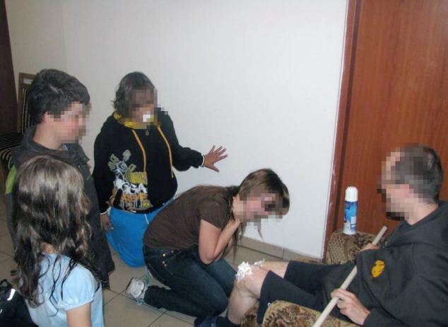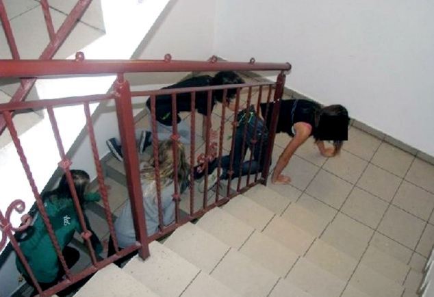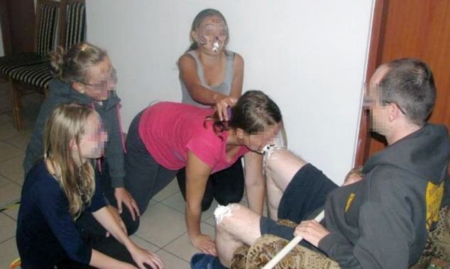 Οι φωτογραφίες που απεικονίζουν κάποια «τελετή μύησης» τραβήχτηκαν στο γυμνάσιο Salesians στο Lubin στη νότια Πολωνία και σε αυτές φαίνονται τόσο αγόρια όσο και κορίτσια, ηλικίας περίπου 13 ετών, να παίρνουν μέρος στο… περίεργο τελετουργικό!