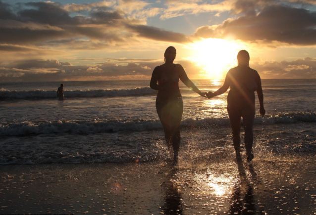 Έβγαλαν τα ρούχα τους και έτρεξαν προς τα παγωμένα νερά στις βορειοανατολικές ακτές της Μεγάλης Βρετανίας.