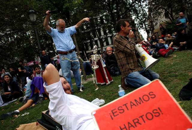 Δεκάδες χιλιάδες Ισπανοί είχαν διαδηλώσει στους δρόμους της Μαδρίτης και στις 15 Σεπτεμβρίου ενάντια στις περικοπές που αποφάσισε να εφαρμόσει η κυβέρνηση στους τομείς της υγείας και της εκπαίδευσης, ενώ την ίδια στιγμή κόπτεται να βοηθήσει το τραπεζικό σύστημα με τη συνδρομή ενός δανειακού πακέτου έως και 100 δισεκ. ευρώ από την Ευρωζώνη.
